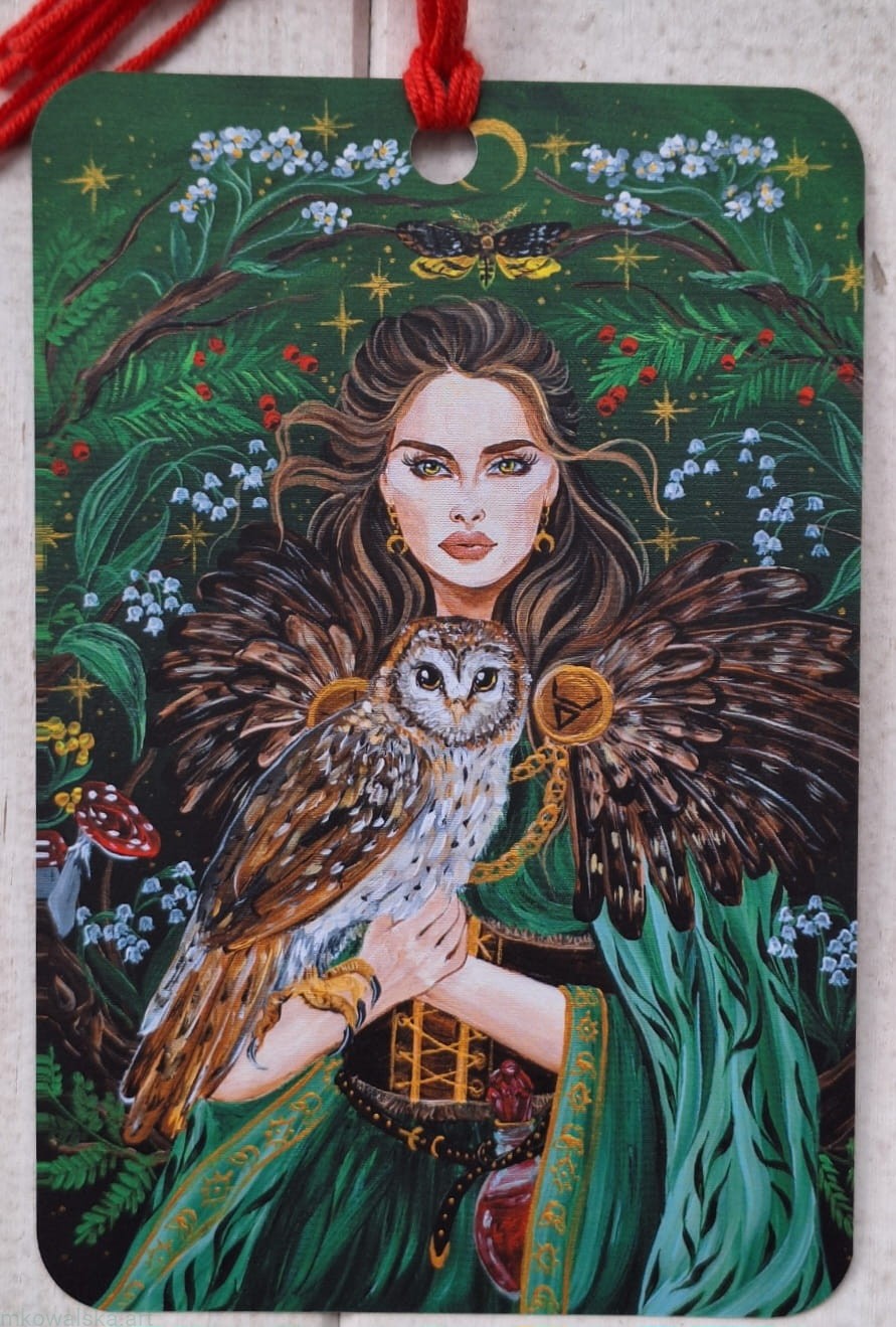 Strzyga posiada piękną pelerynę z sowich piór, w rękach trzyma sowę. To oczywiste nawiązanie do jej możliwości zamiany w tego ptaka. U pasa widać buteleczkę z eliksirem - możliwe, że dzięki niemu nie staje się krwiożerczą istotą i hamuje swoje zapędy. Interpretację oczywiście pozostawiam Wam.