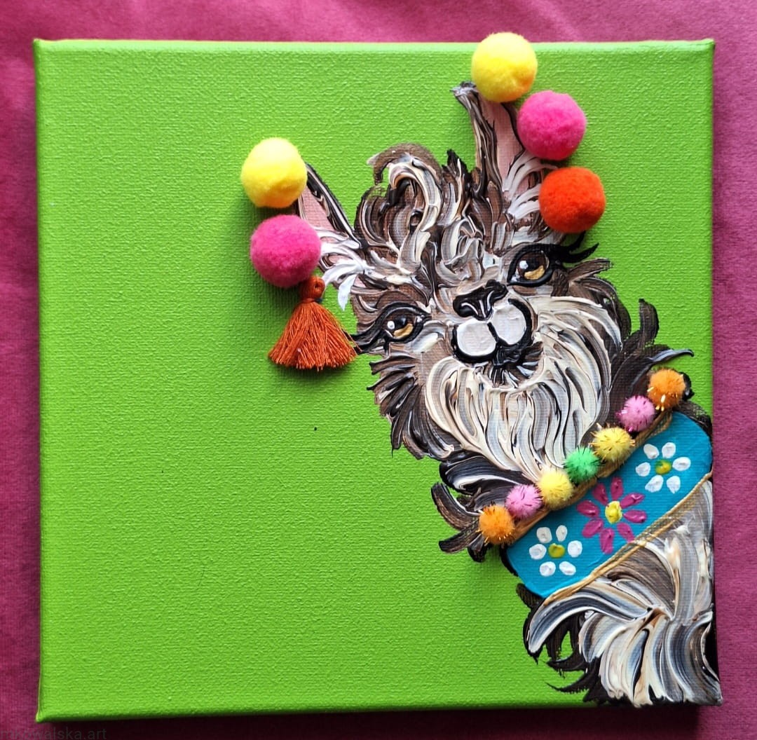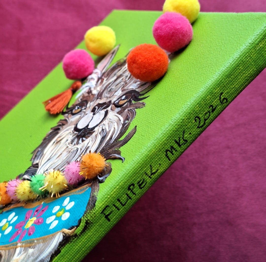 Obraz oryginalny z optymistyczną i wesołą alpaką: