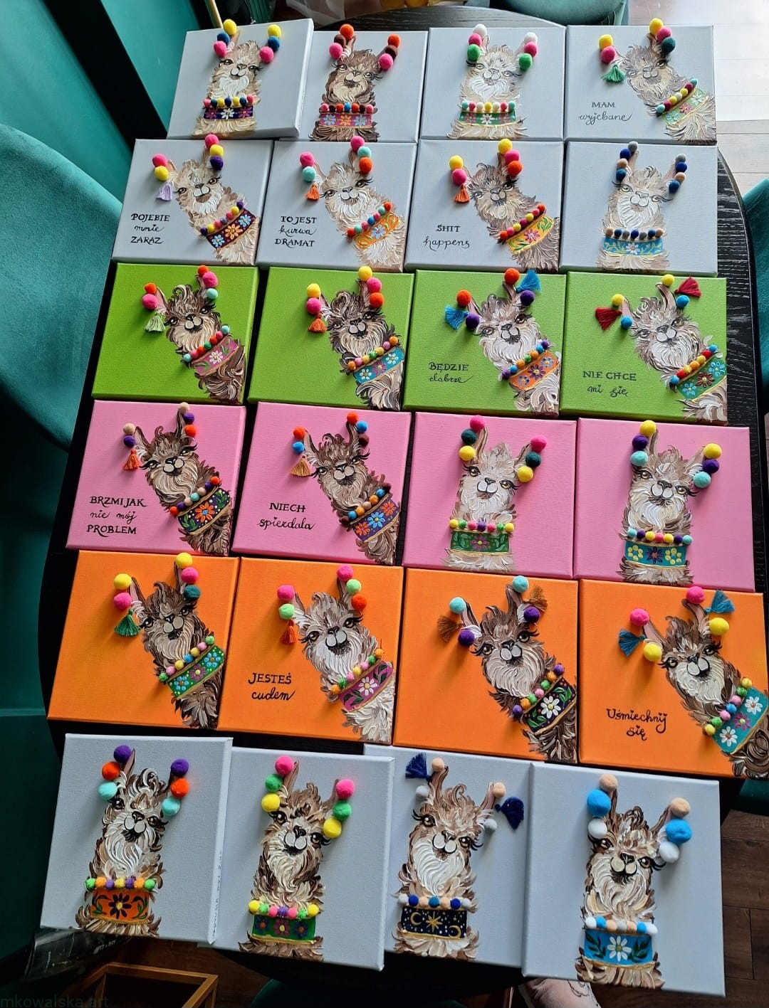 Obraz oryginalny z optymistyczną i wesołą alpaką: