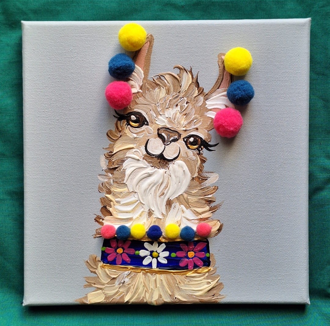 Obraz oryginalny z optymistyczną i wesołą alpaką: