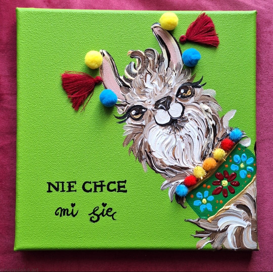 Obraz oryginalny z optymistyczną i wesołą alpaką: