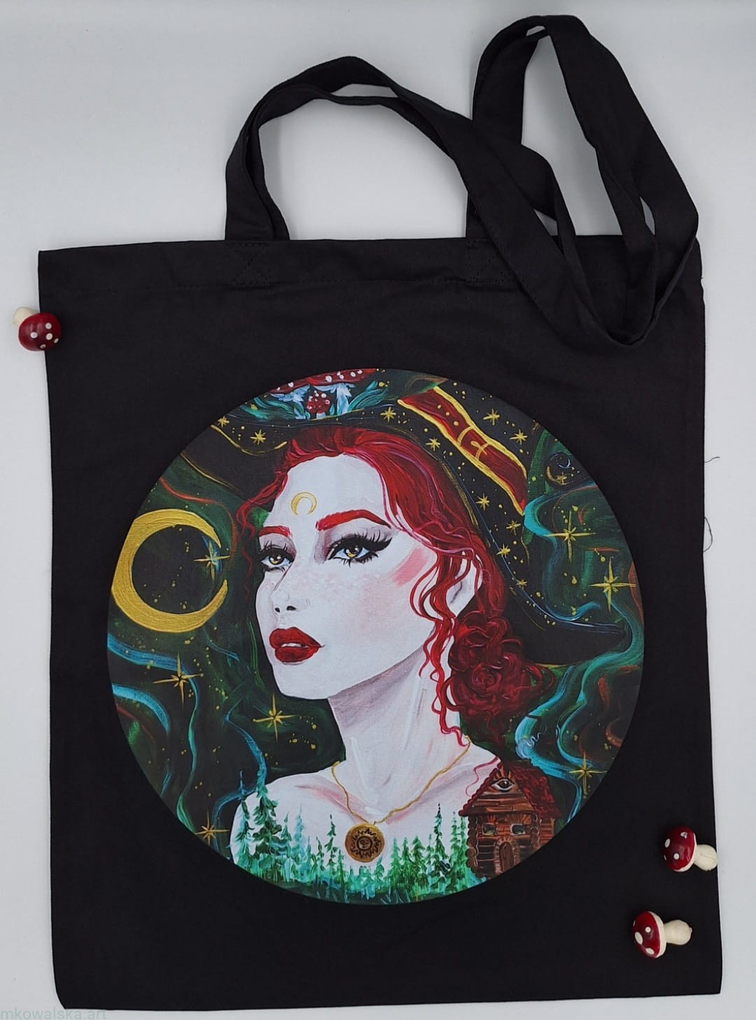 Czarna torba bawełniana z nadrukiem Czarodziejki: Czarodziejka Czerwona