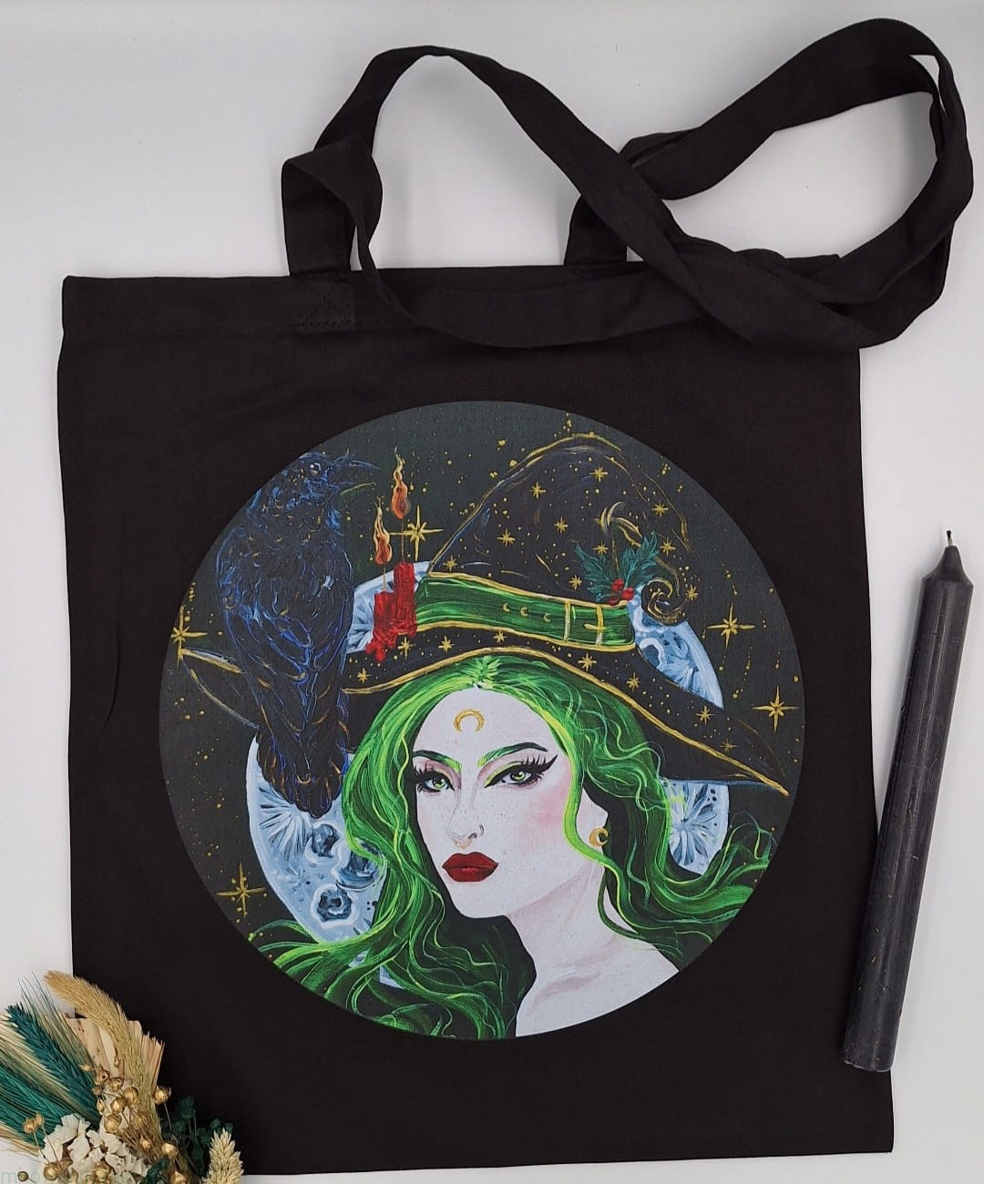 Czarna torba bawełniana z nadrukiem Czarodziejki: Czarodziejka Zielona