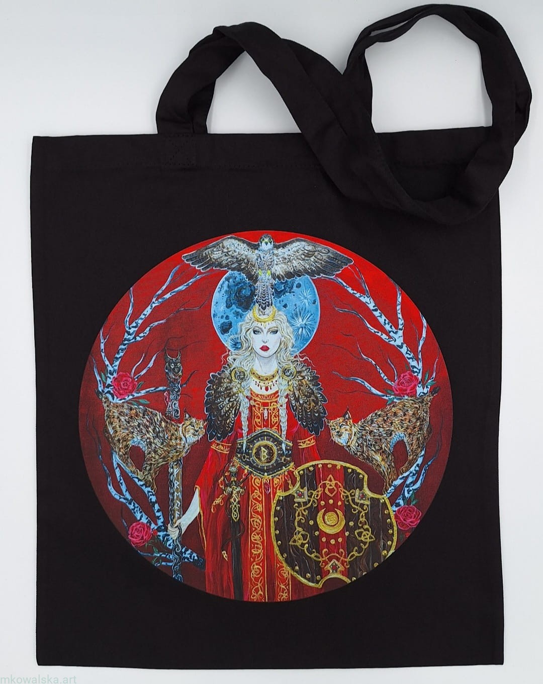 - Czarna torba bawełniana z nadrukiem mojego obrazu malowanego farbami akrylowymi