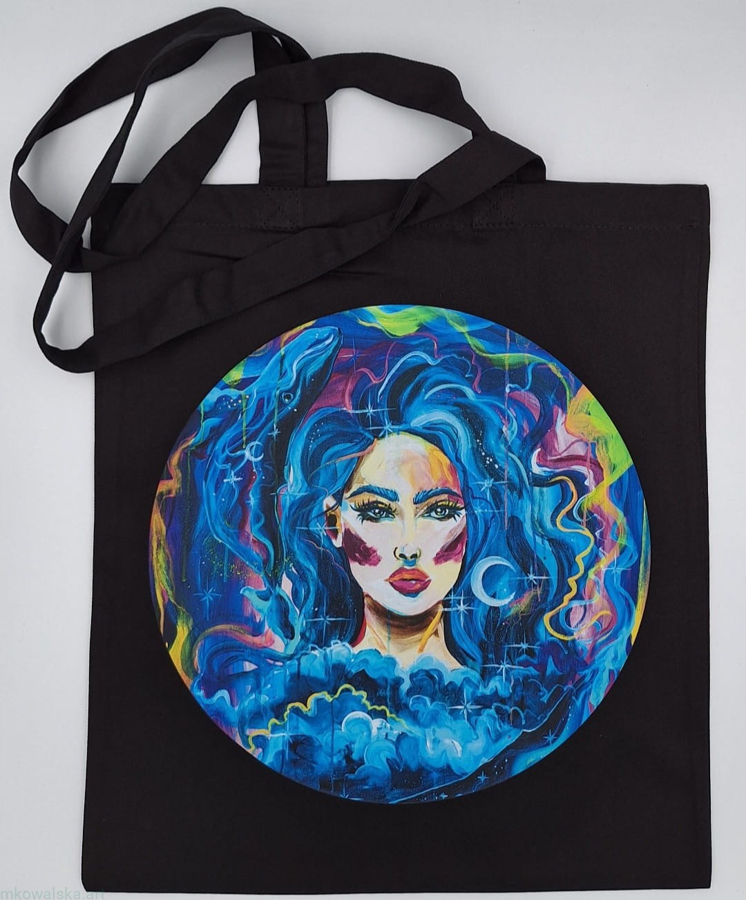 - Czarna torba bawełniana z nadrukiem mojego obrazu malowanego farbami akrylowymi