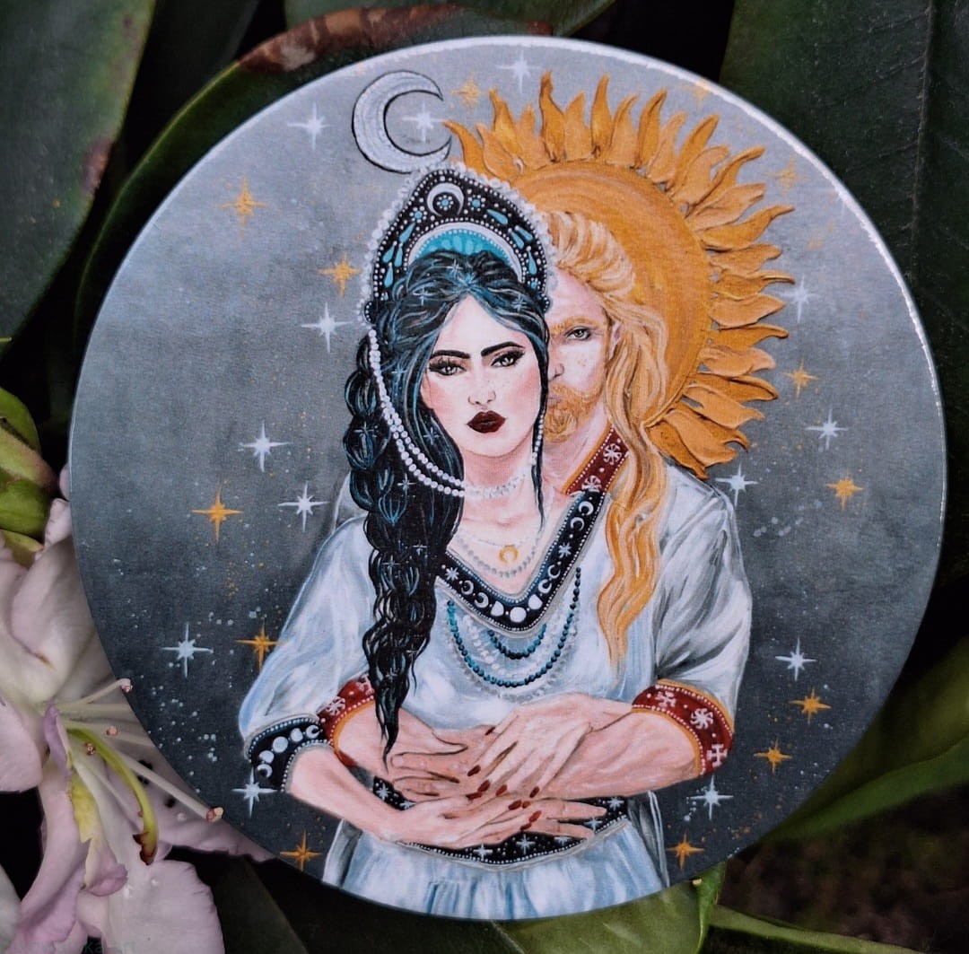 Ja do swojego obrazu wzięłam od Chorsa element lunarny, a Dadźboga – solarny. Przedstawiłam ich jako parę odwiecznych kochanków, tj. Księżyc i Słońce.