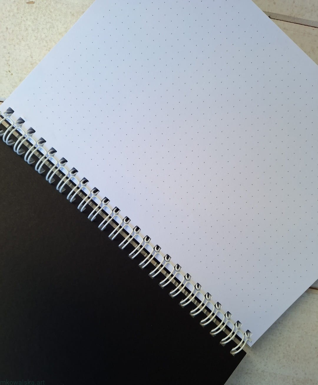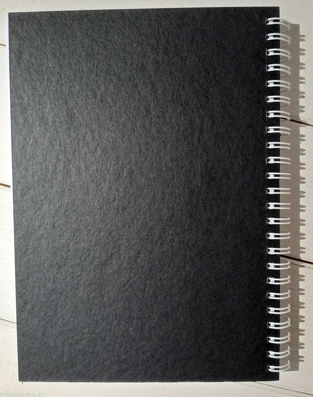 - tył okładki i tył notatnika ze sztywnej czarnej tektury w kolorze czarny mat