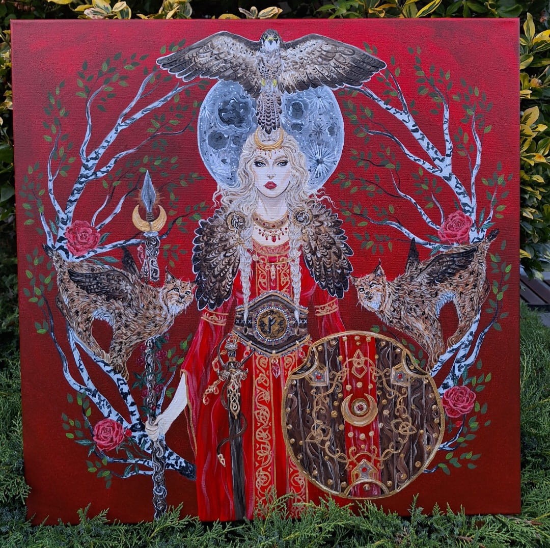 Obraz oryginalny Boginie Świata: Freja, 60x60cm, 2023-24