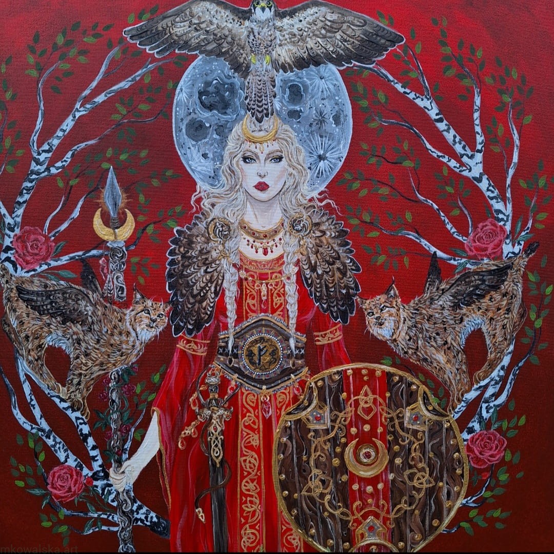 Połowa poległych wojowników podlegałą jej władzy na polach Folkvangr (druga połowa w Walhalli u Odyna).