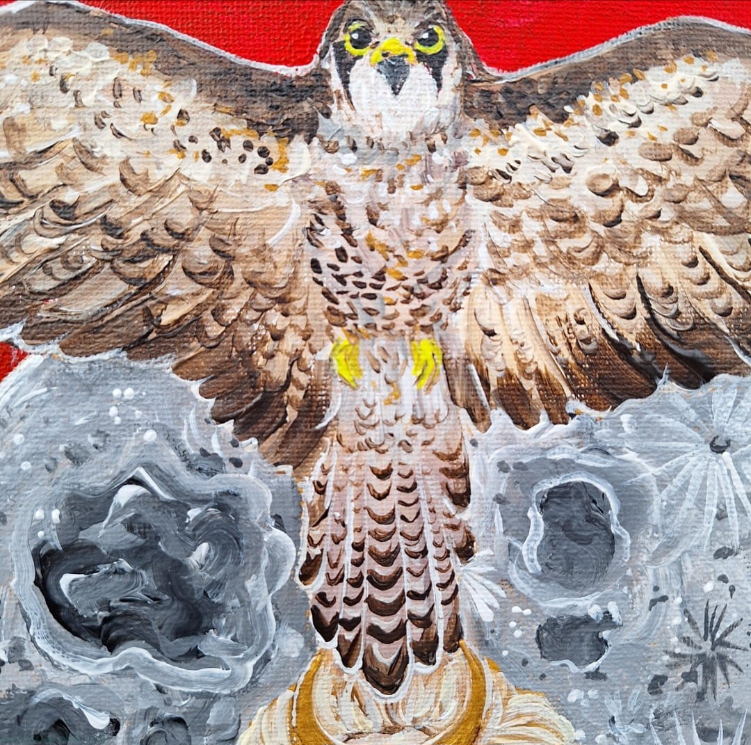 Często przybierała postać sokoła (na górze obrazu, jak również narzuta/szata na suknię z piór sokoła na jej sukni), posiadała moc zamiany ludzi w dziki.