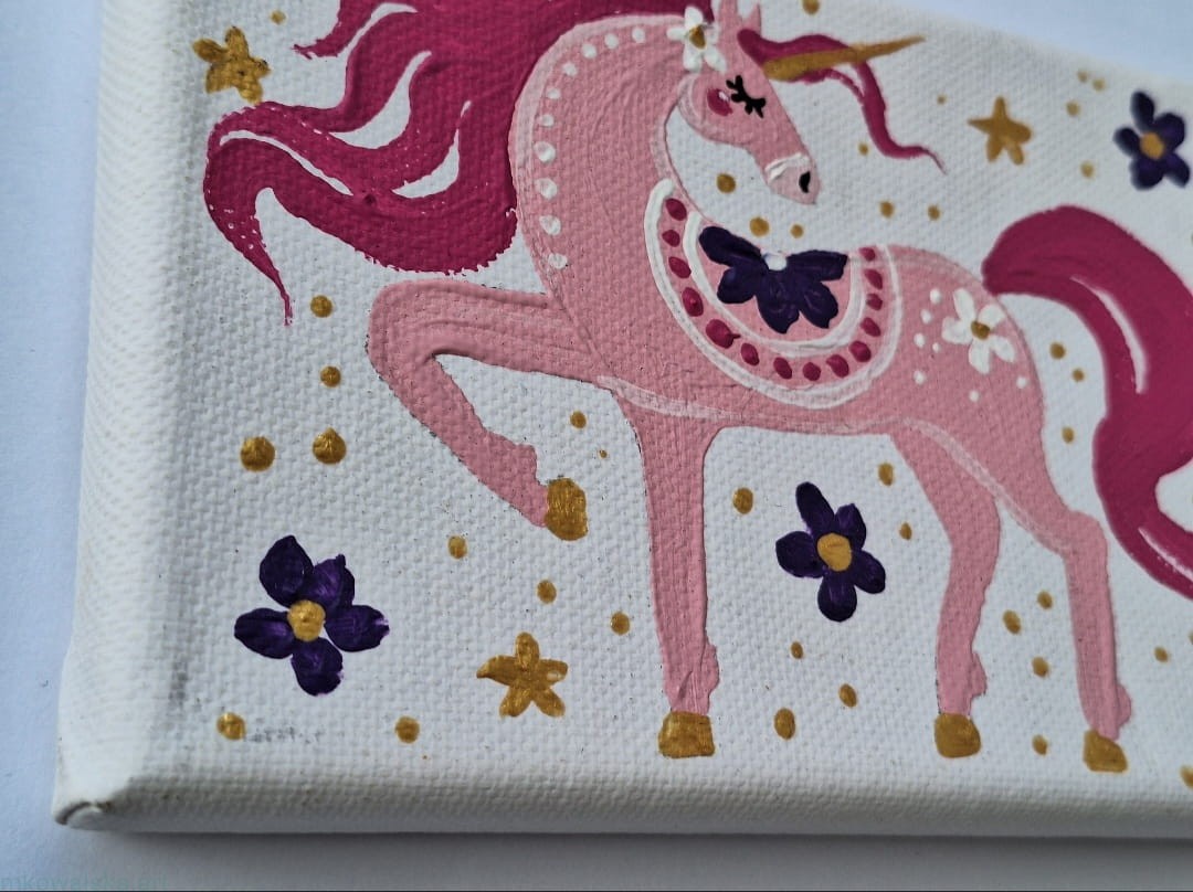 Obraz oryginalny Folkowy Jednorożec Różowy II 15x10cm 2024