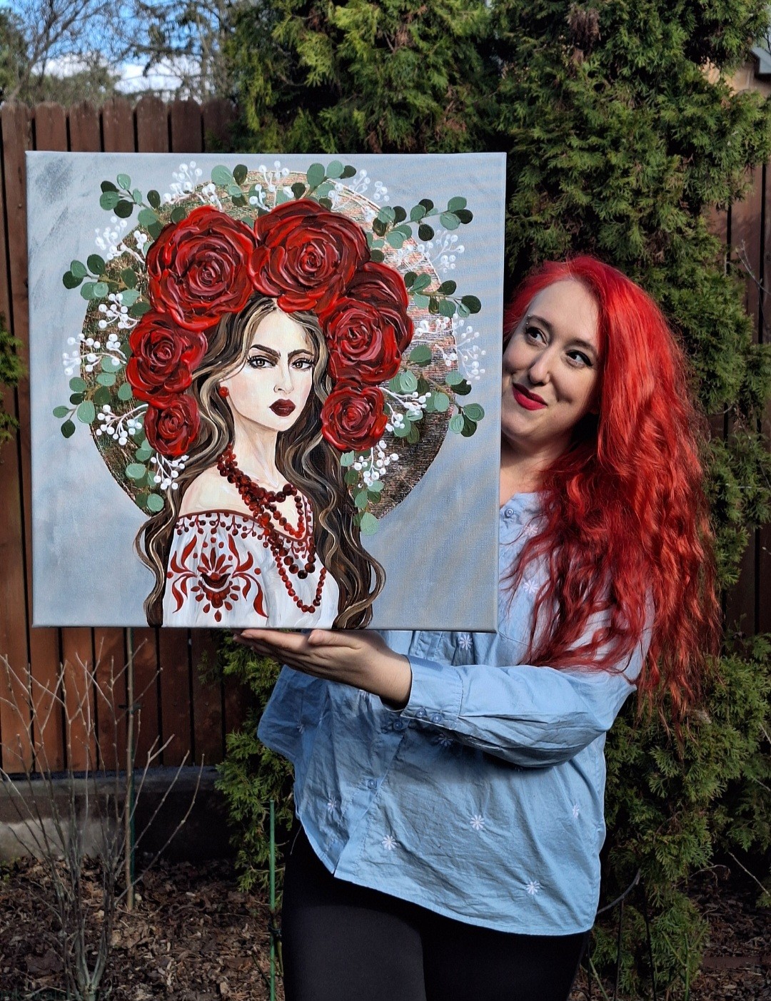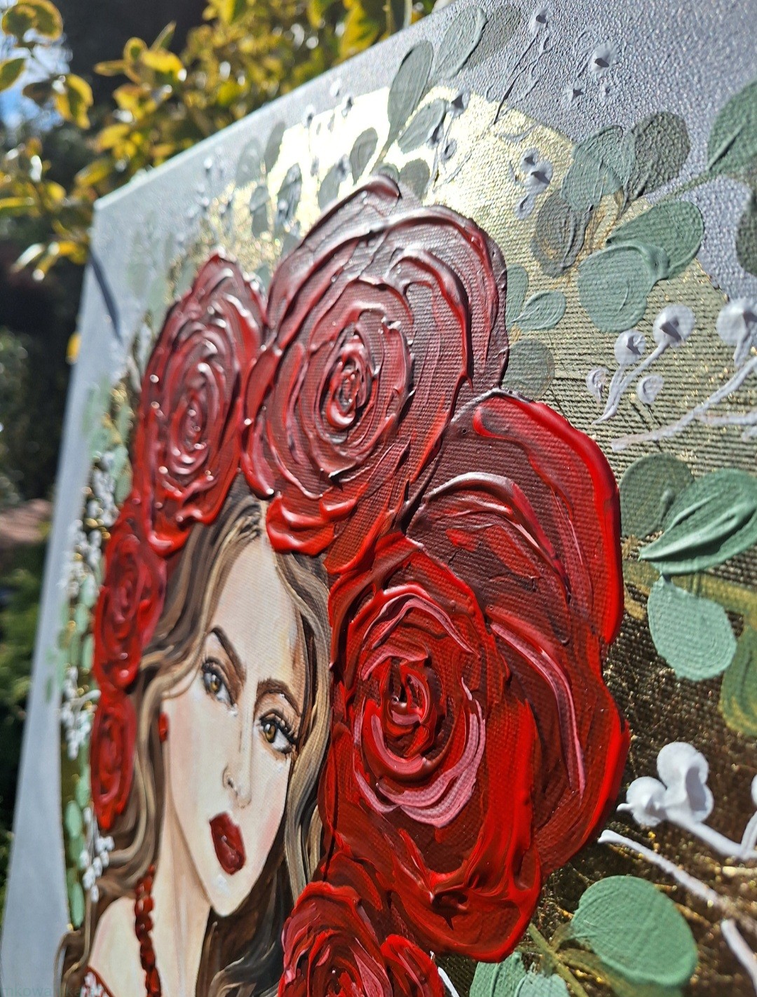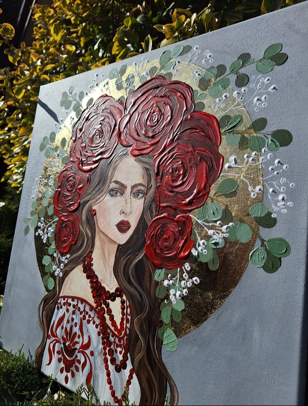 Siła we mnie - obraz z serii Glamour Slavic Folk, w której łączę inspiracje sztuką ludową (nurt w sztuce: prymitywizm), folklorem oraz zestawiam go z bogactwem złota.