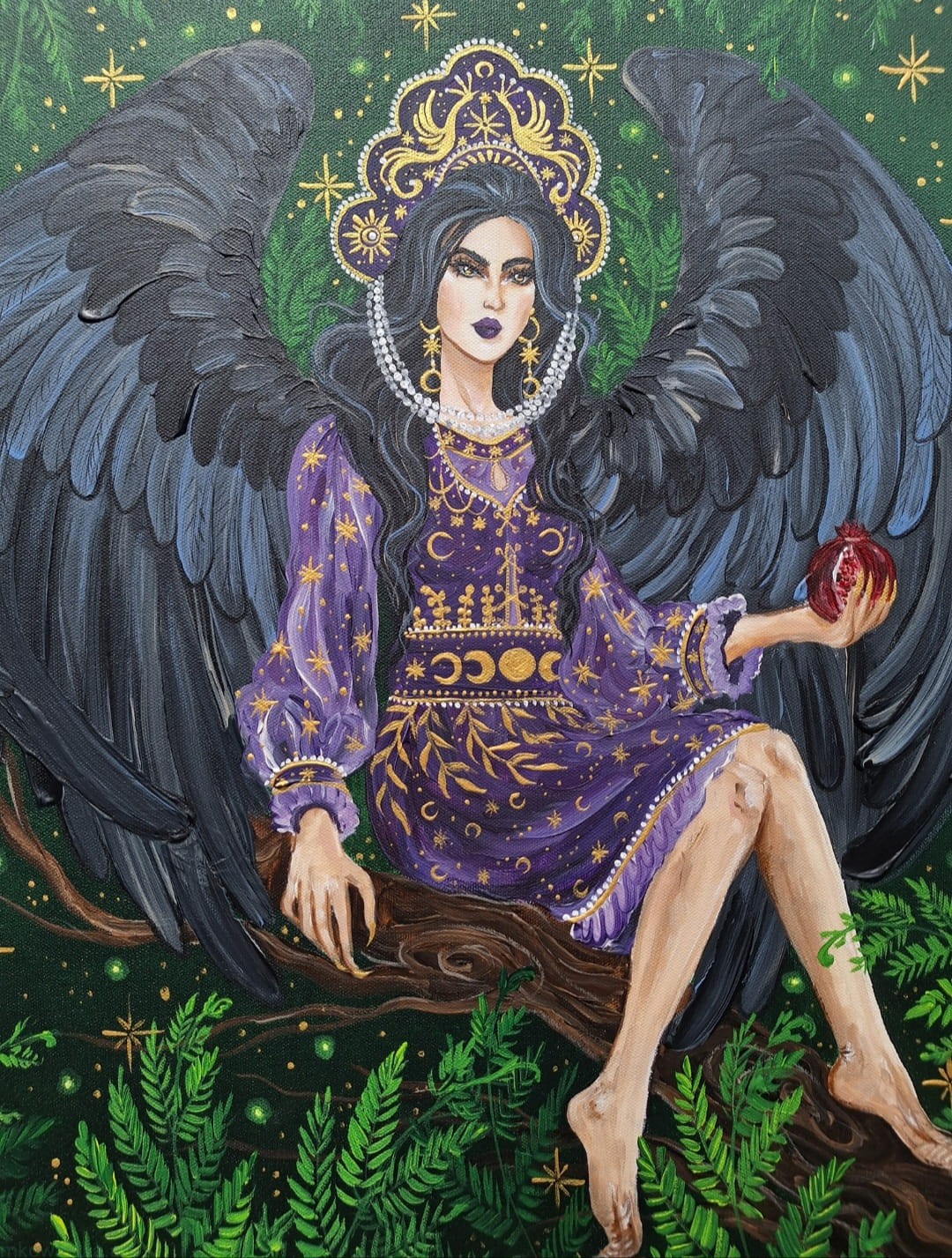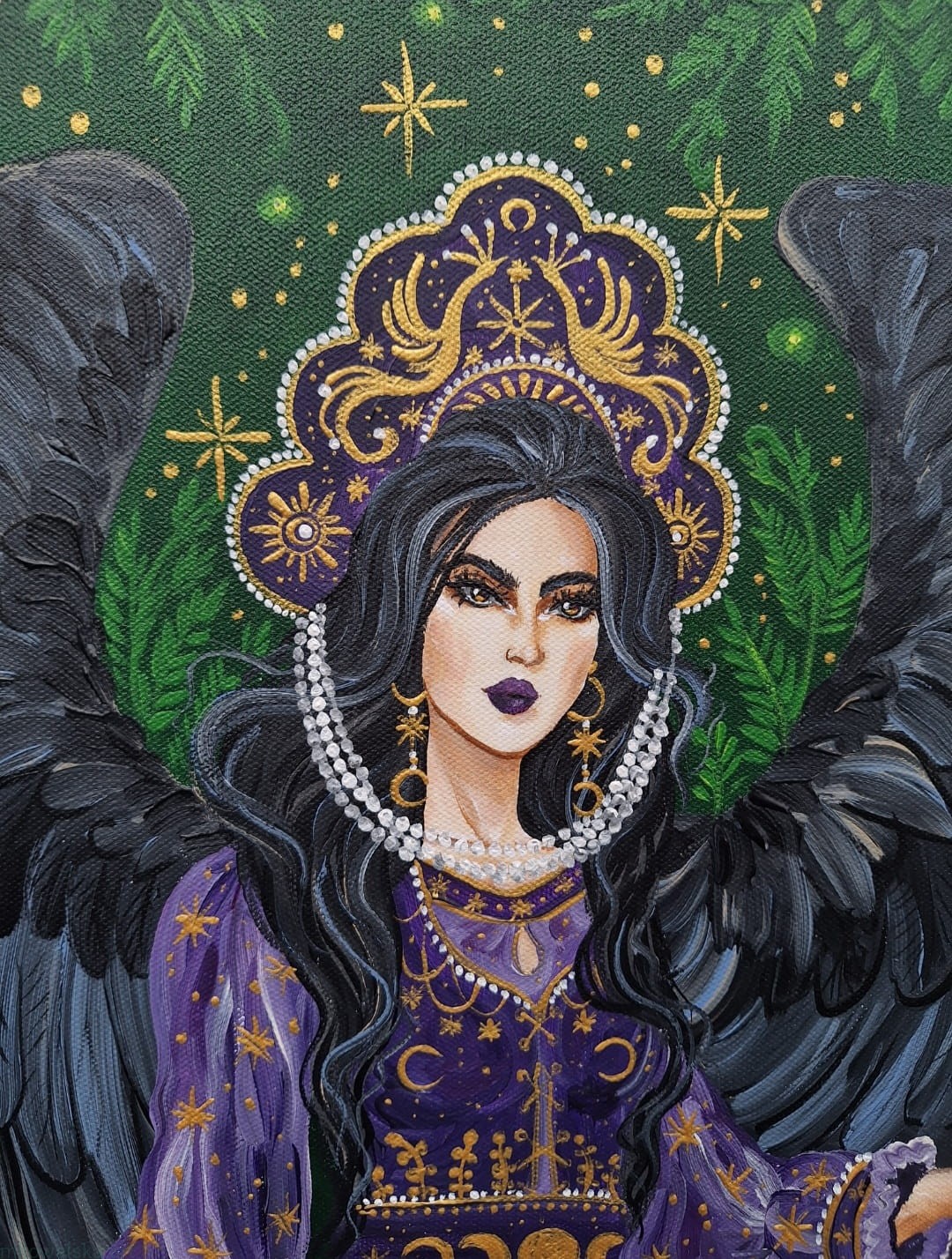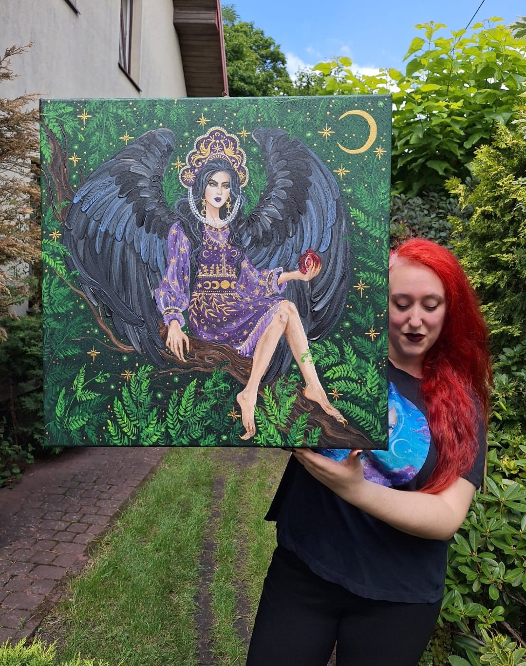 Obraz oryginalny: Sirin, Słowiańscy Bogowie, 60x60cm, 2025