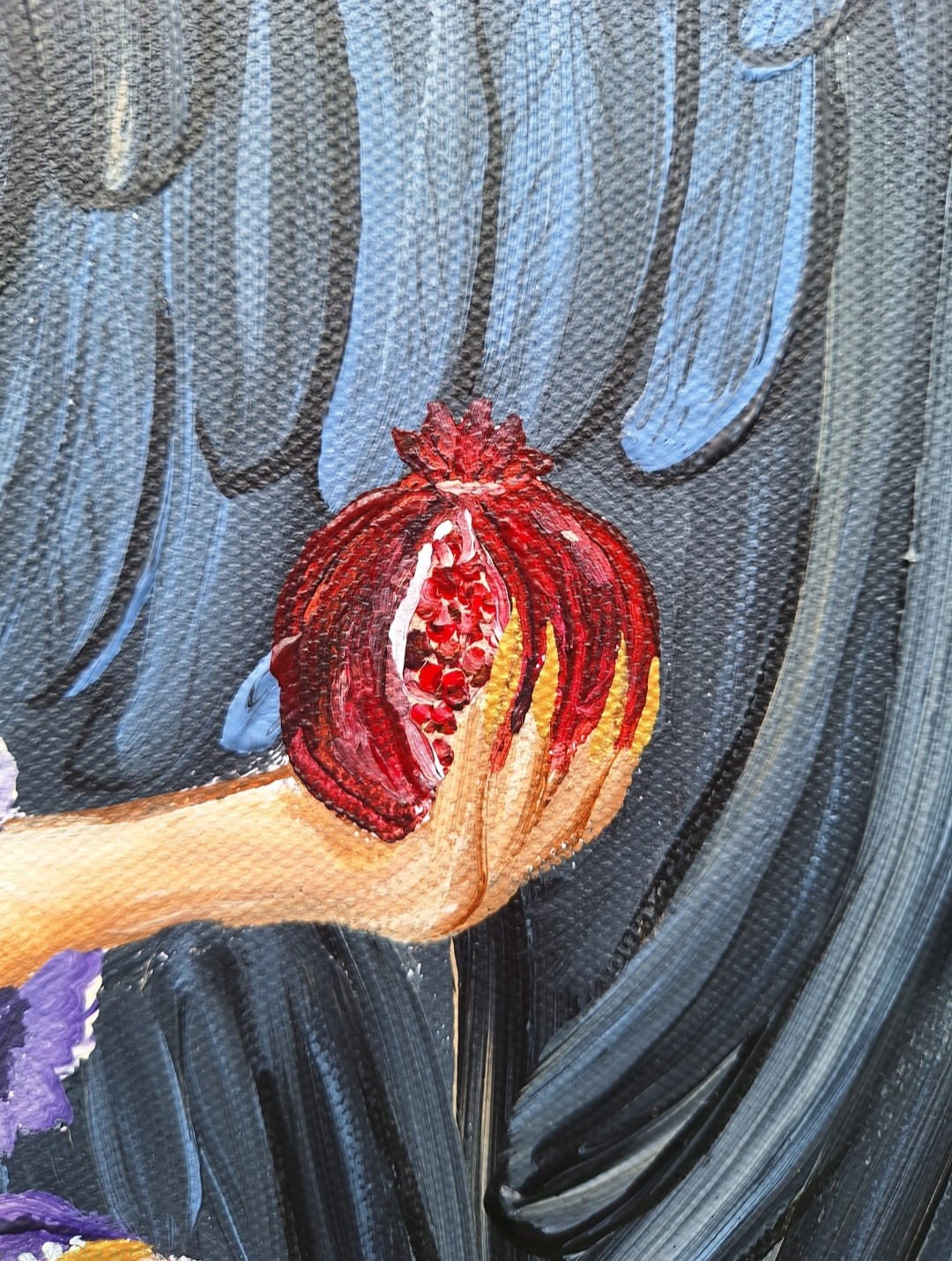 W ręku Sirin trzyma granat, który nie znalazł się tam przypadkowo. Według mitologii greckiej (z której Sirin zaczerpnął swoje pochodzenie), granat ma podwójną symbolikę: płodności i odrodzenia, ale również śmierci i podziemi. Jest atrybutem bogini Hery (Juno w mitologii rzymskiej), symbolizującym płodność i macierzyństwo. Jednocześnie, w historii o Persefonie i Hadesie, zjedzenie nasion granatu przez Persefonę wiąże się z jej pobytem w podziemnym świecie i cyklem życia i śmierci.