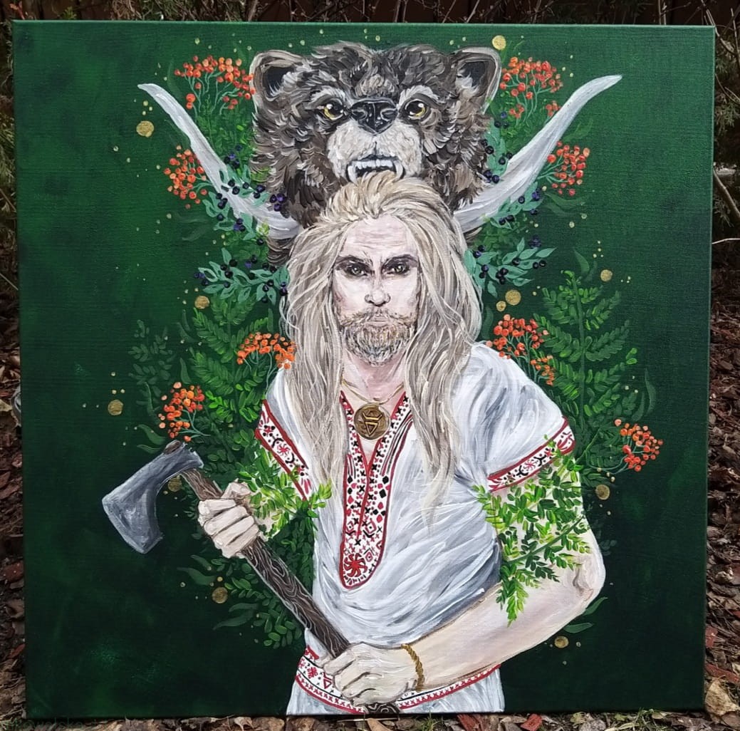 Obraz oryginalny Słowiańscy Bogowie: Weles Pan Zaświatów, Magii i Kowalstwa, 70x70 cm, 2023