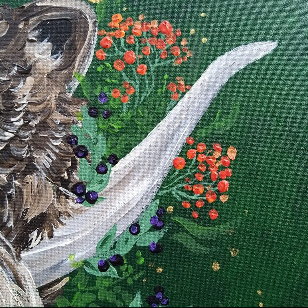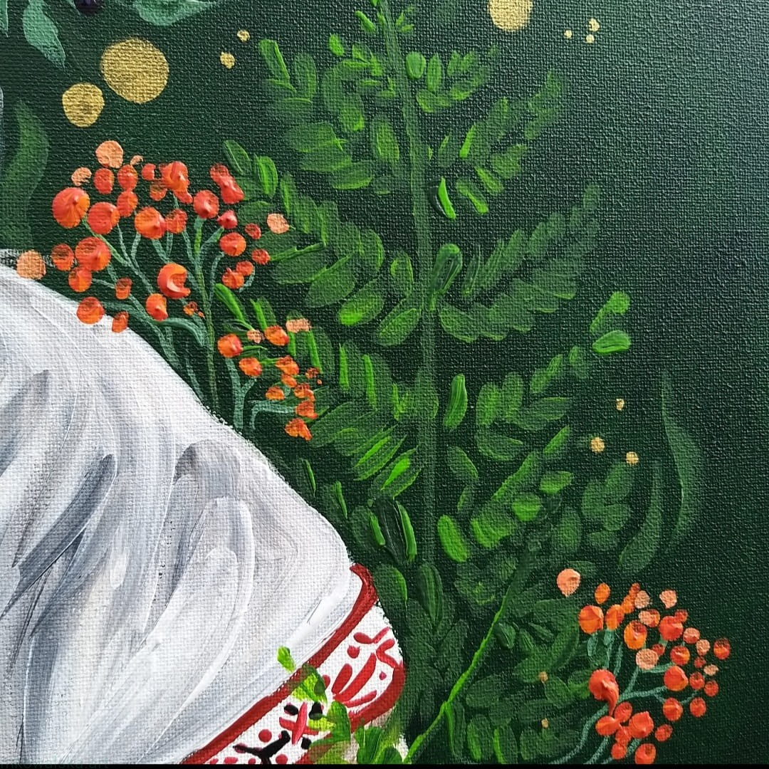 Obraz namalowany w 2023 roku, format 70x70cm, farby akrylowe na płótnie bawełnianym obitym na drewnianą ramę.