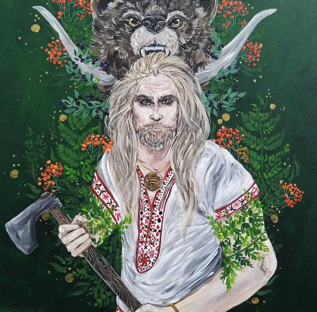 Tydzień Welesa obchodzimy między 9 a 15 lutego. Tydzień ten to też umowna połowa zimy, kiedy to "niedźwiedź obraca się na drugi bok" - stąd też na obrazie głowa niedźwiedzia, nawiązująca do Welesowego Tygodnia, ale też symboliki duchowej tego boga (Weles = Niedźwiedź).