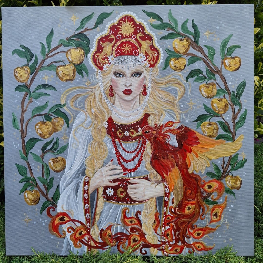 Obraz oryginalny Słowiańscy Bogowie: Żar-ptak 70x70cm 2024