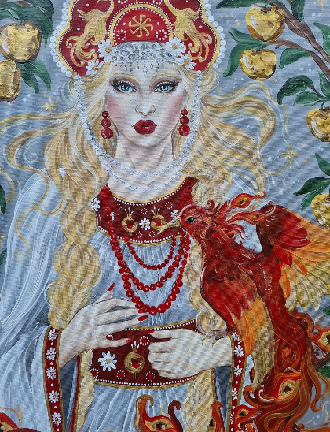 Żar-pta, Cud-żar-ptak, Raróg, Raraszek - to określenia ognistego ptaka ze słowiańskiej kultury. Obraz z podcyklu Słowiańskie Baśnie, w którym przenoszę się do lat swojego dzieciństwa i fascynacji kulturą słowiańską.