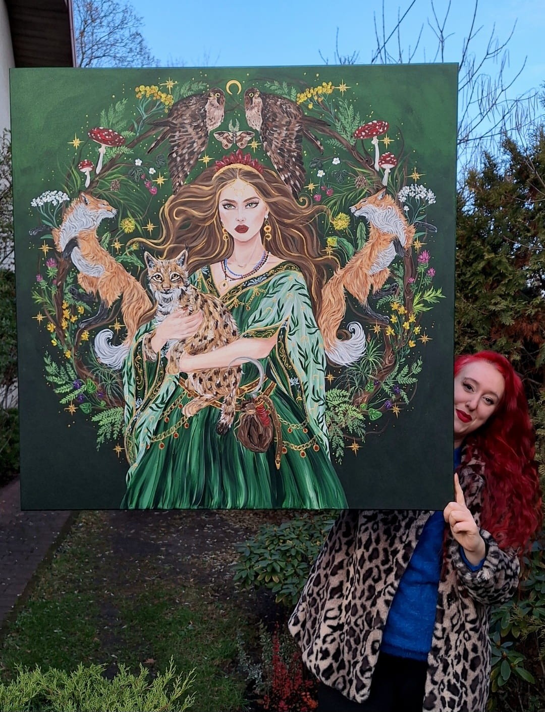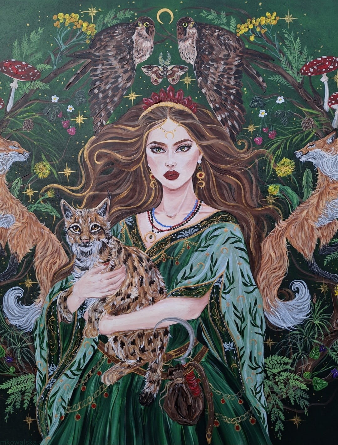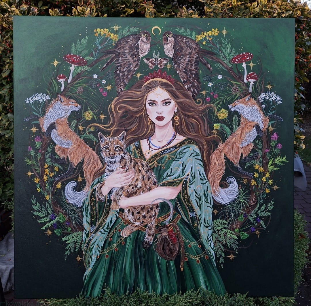 Obraz oryginalny Słowiańscy Bogowie: Zielarka 100x100cm 2024