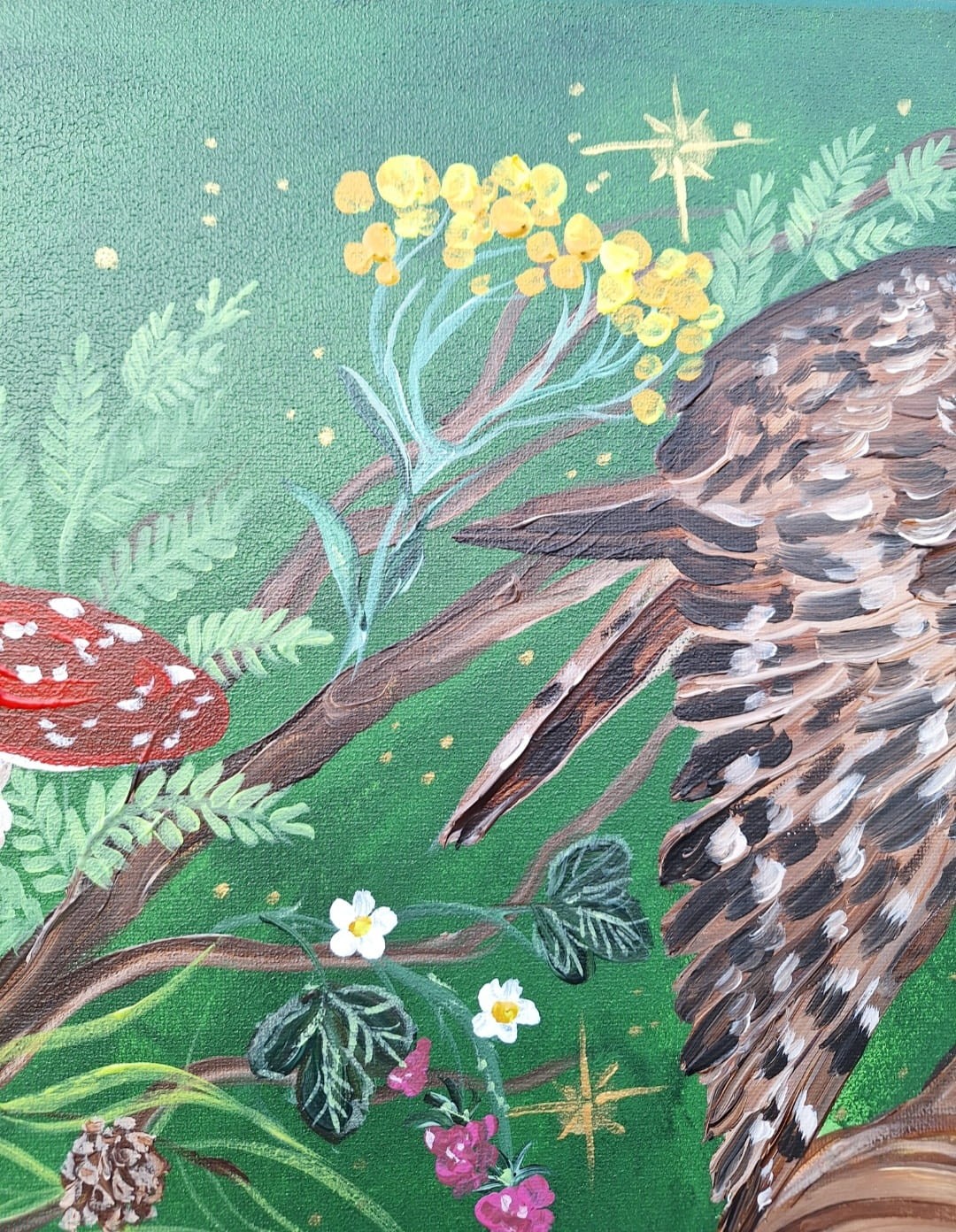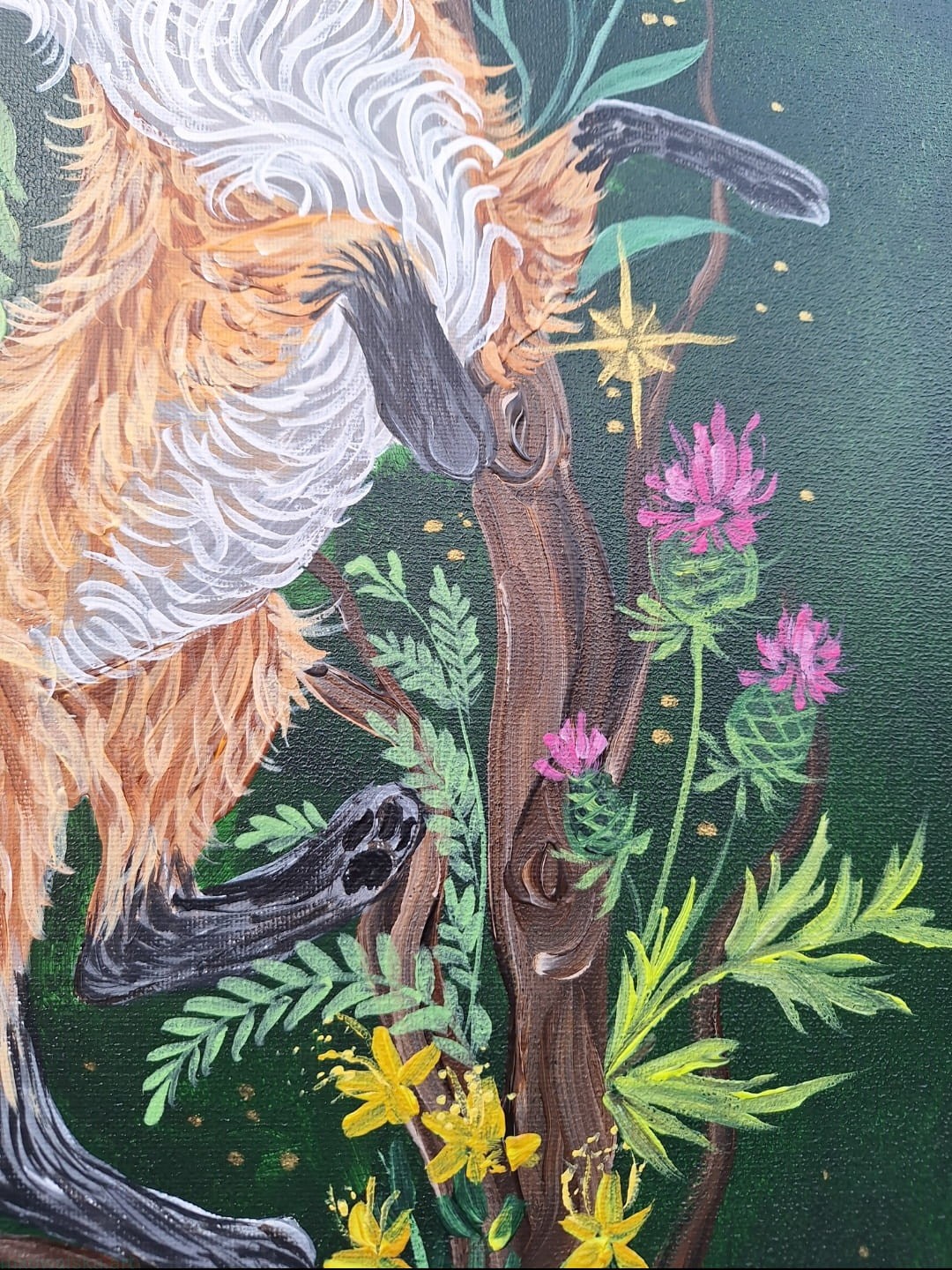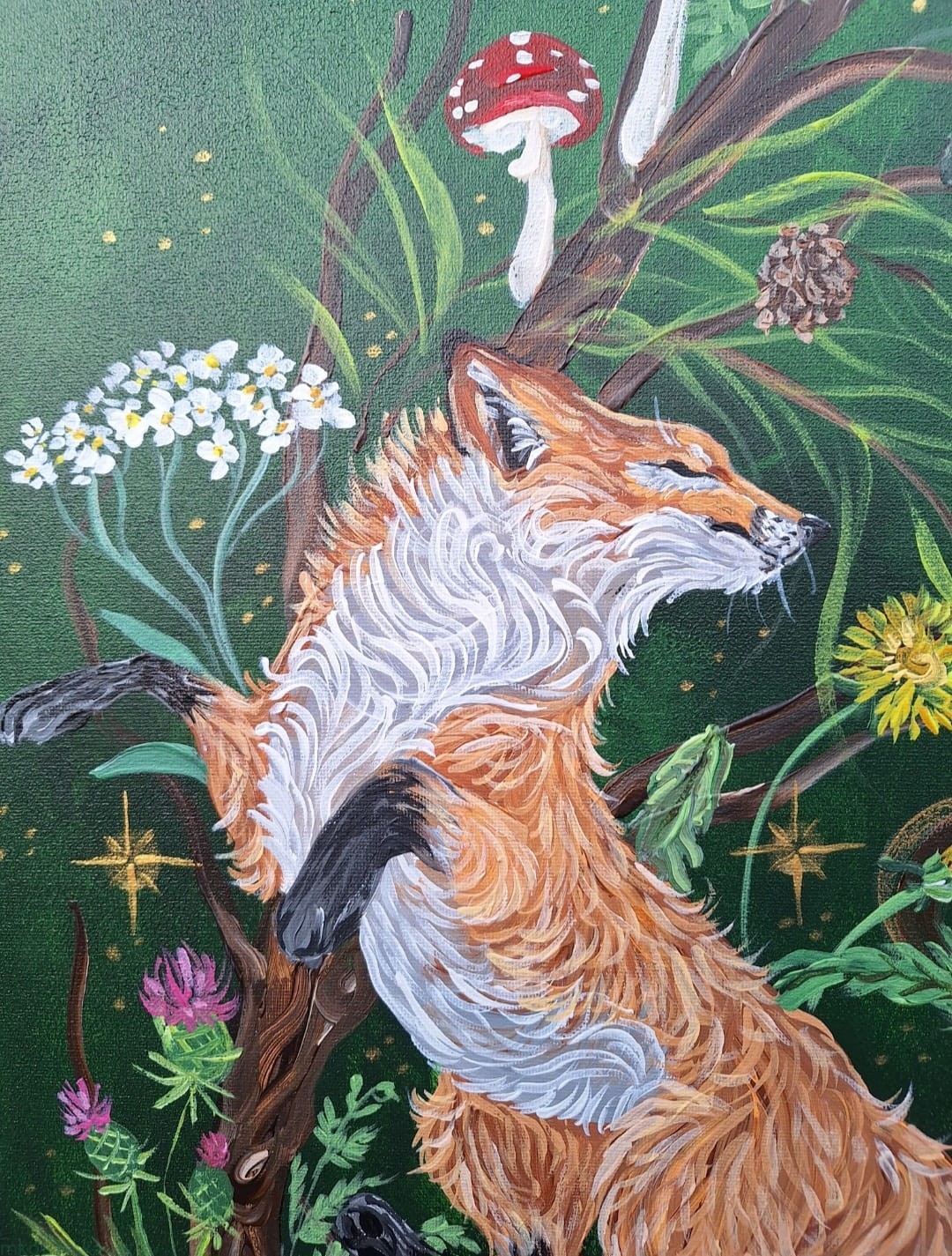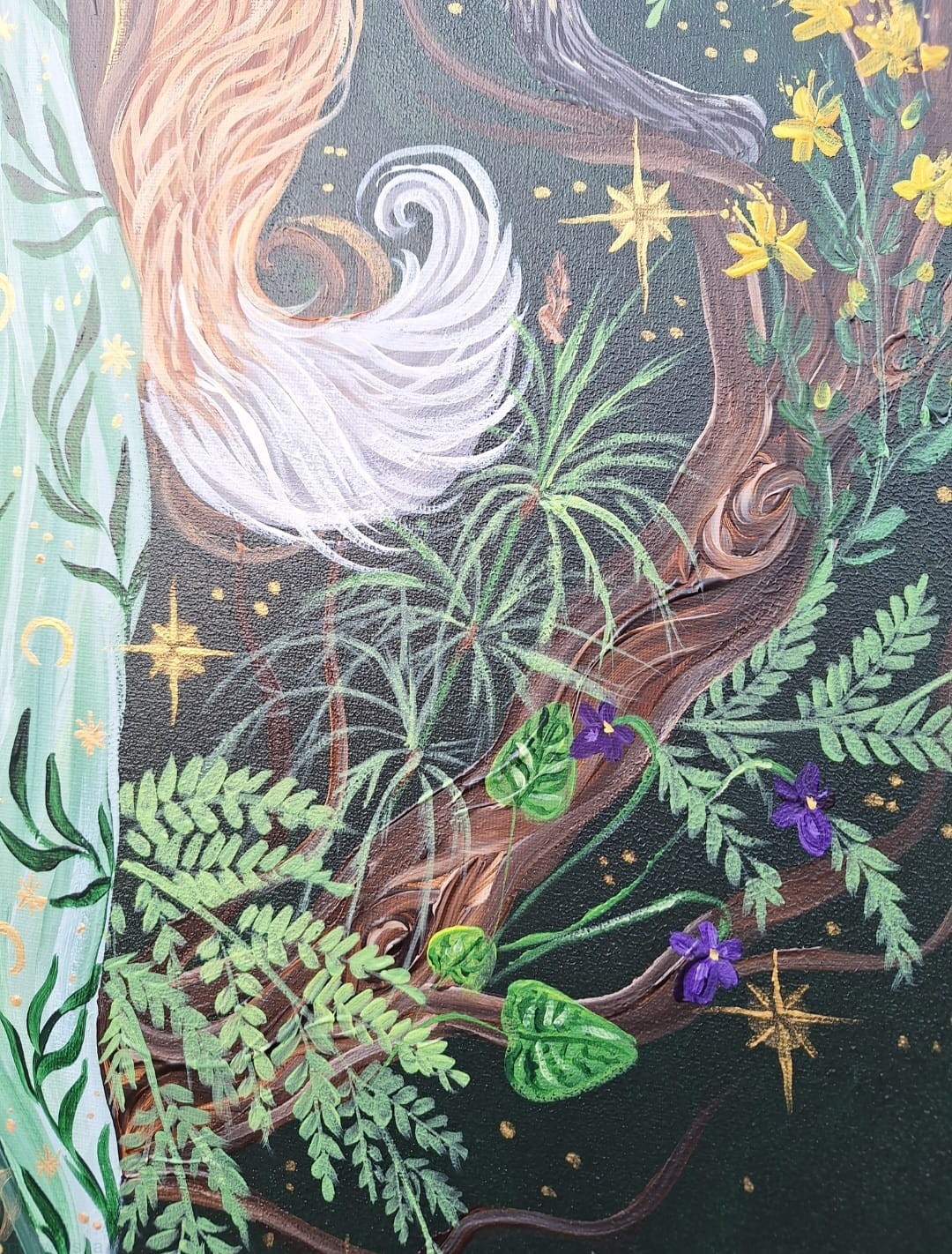 Obraz oryginalny przedstawiający moją malarską interpretację Zielarki, czyli kobiety wiedzącej, posiadającą ogromną wiedzę w zakresie zbioru, przetwórstwa i używania ziół oraz innych darów Matki Natury.