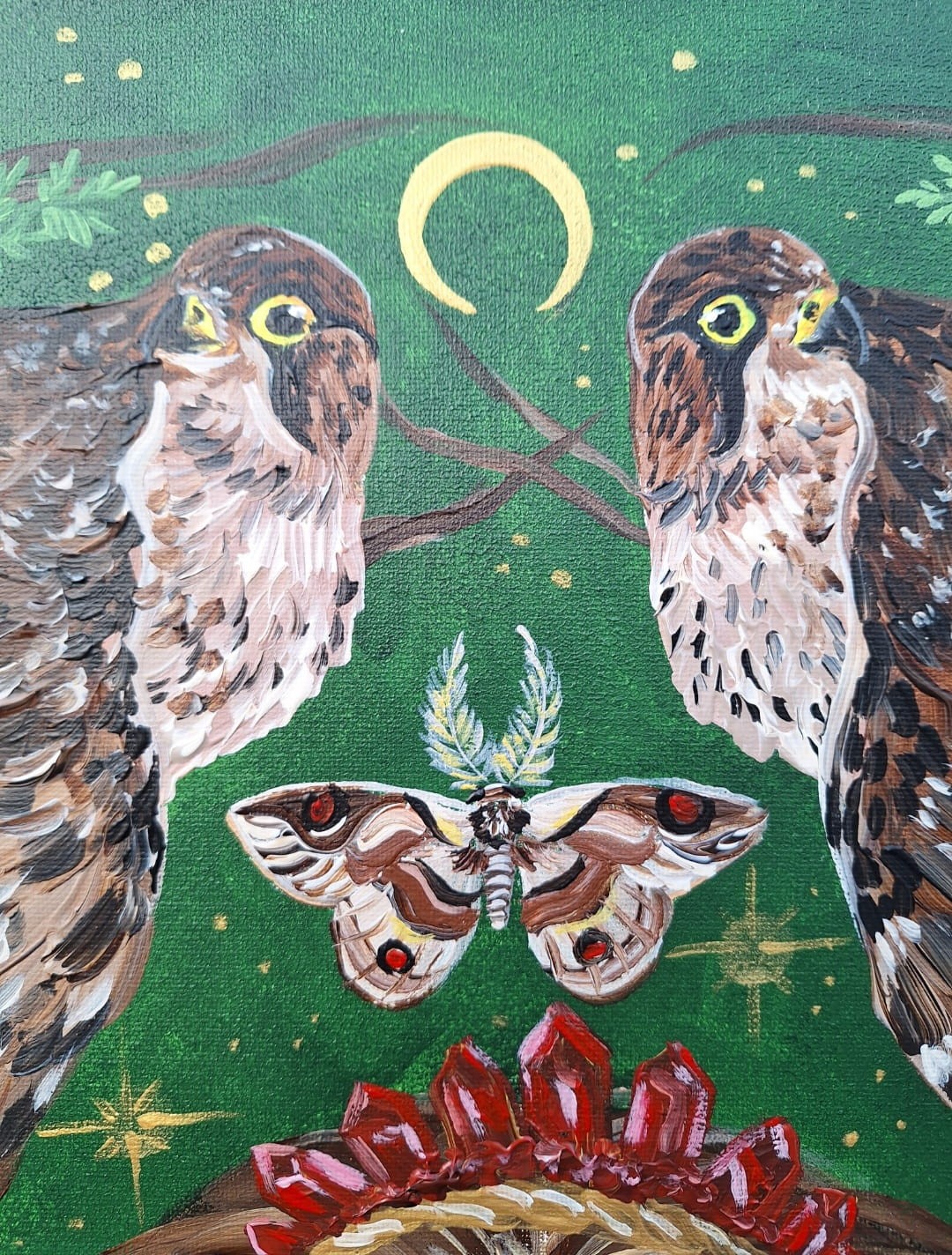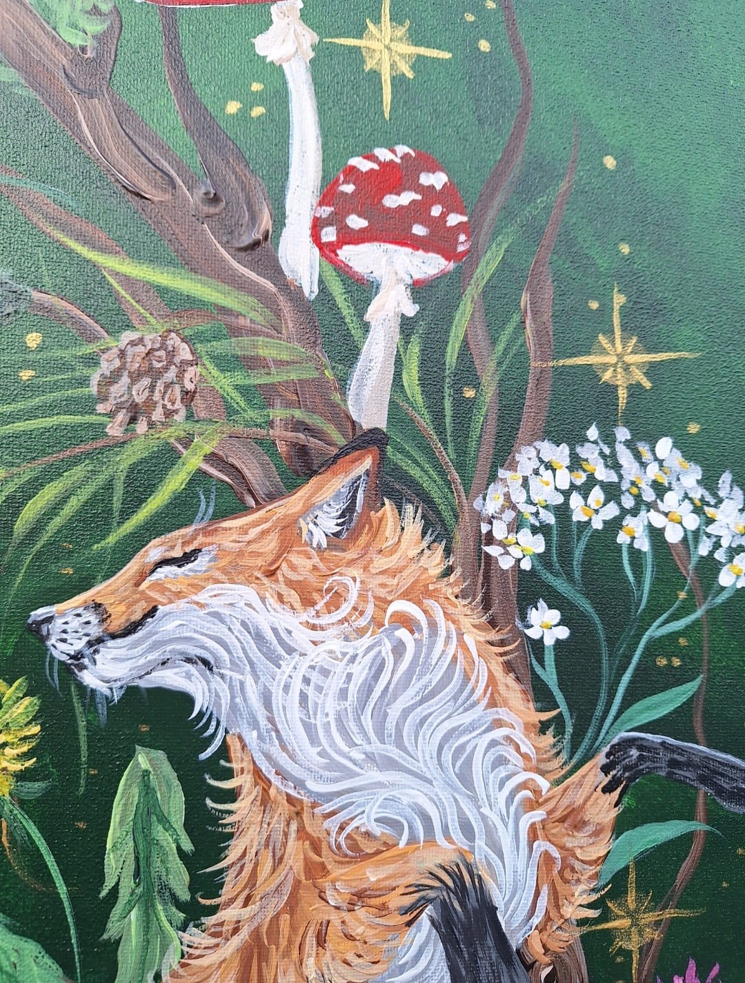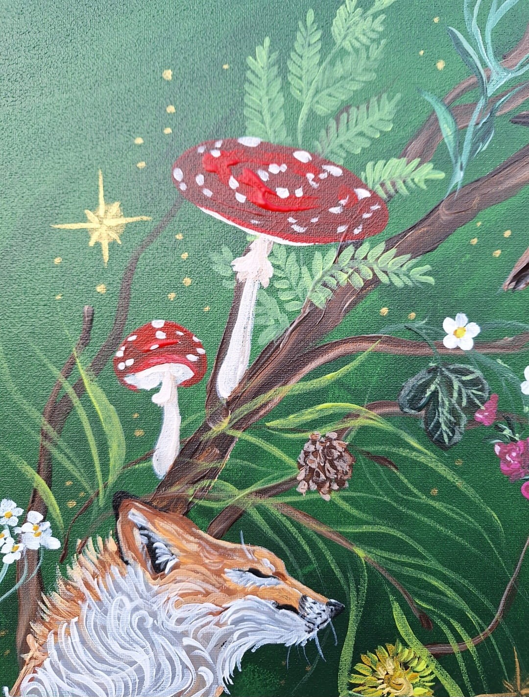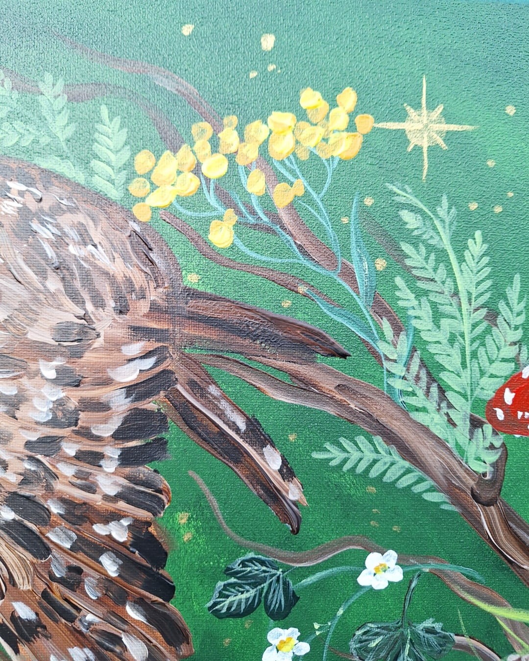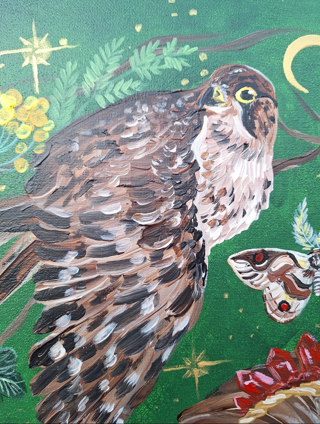 Obraz oryginalny przedstawiający moją malarską interpretację Zielarki, czyli kobiety wiedzącej, posiadającą ogromną wiedzę w zakresie zbioru, przetwórstwa i używania ziół oraz innych darów Matki Natury.