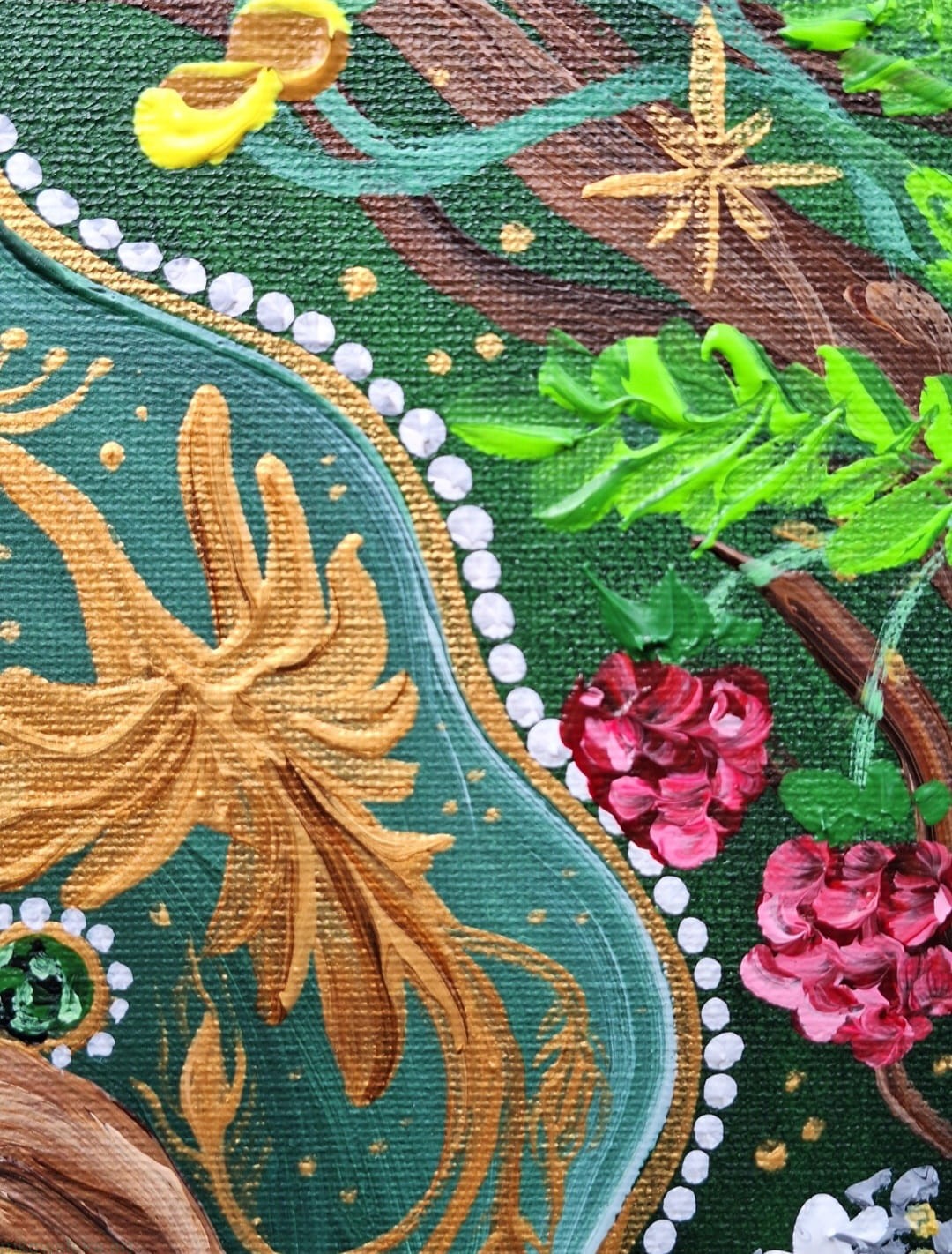 Kolory obrazu są żywe i nasycone, a sam obraz stanowi przepiękne zaproszenie do odkrywania wspaniałości i bogactwa lasu, jak i kultury słowiańskiej.
