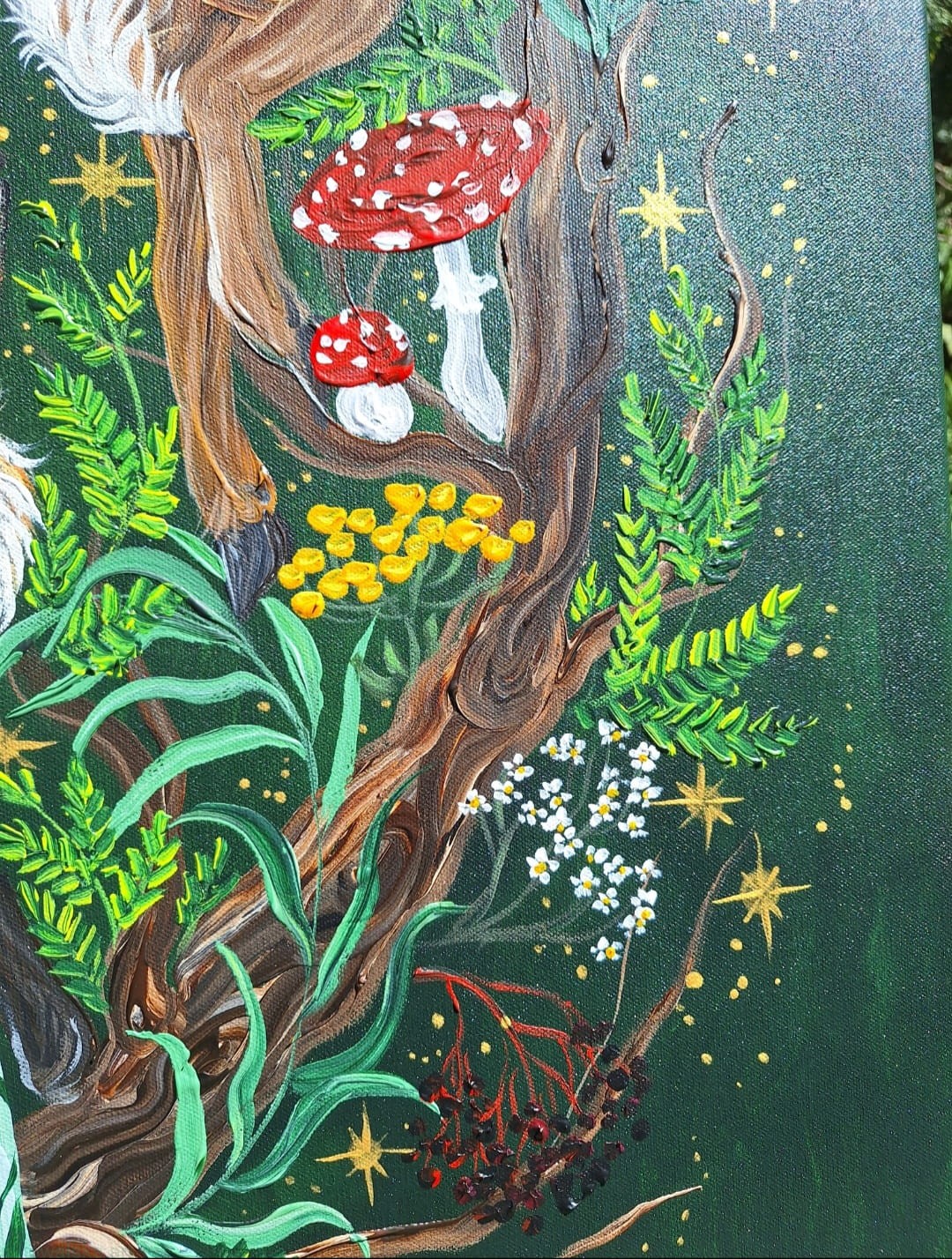 Z roślin leczniczych/stosowanych w medycynie ludowej: rokitnik, krwawnik, jeżyny leśne, dziurawiec, jarzębina, muchomor czerwony, wrotycz, kwiaty i owoce czarnego bzu, gałęzie wierzbowe.