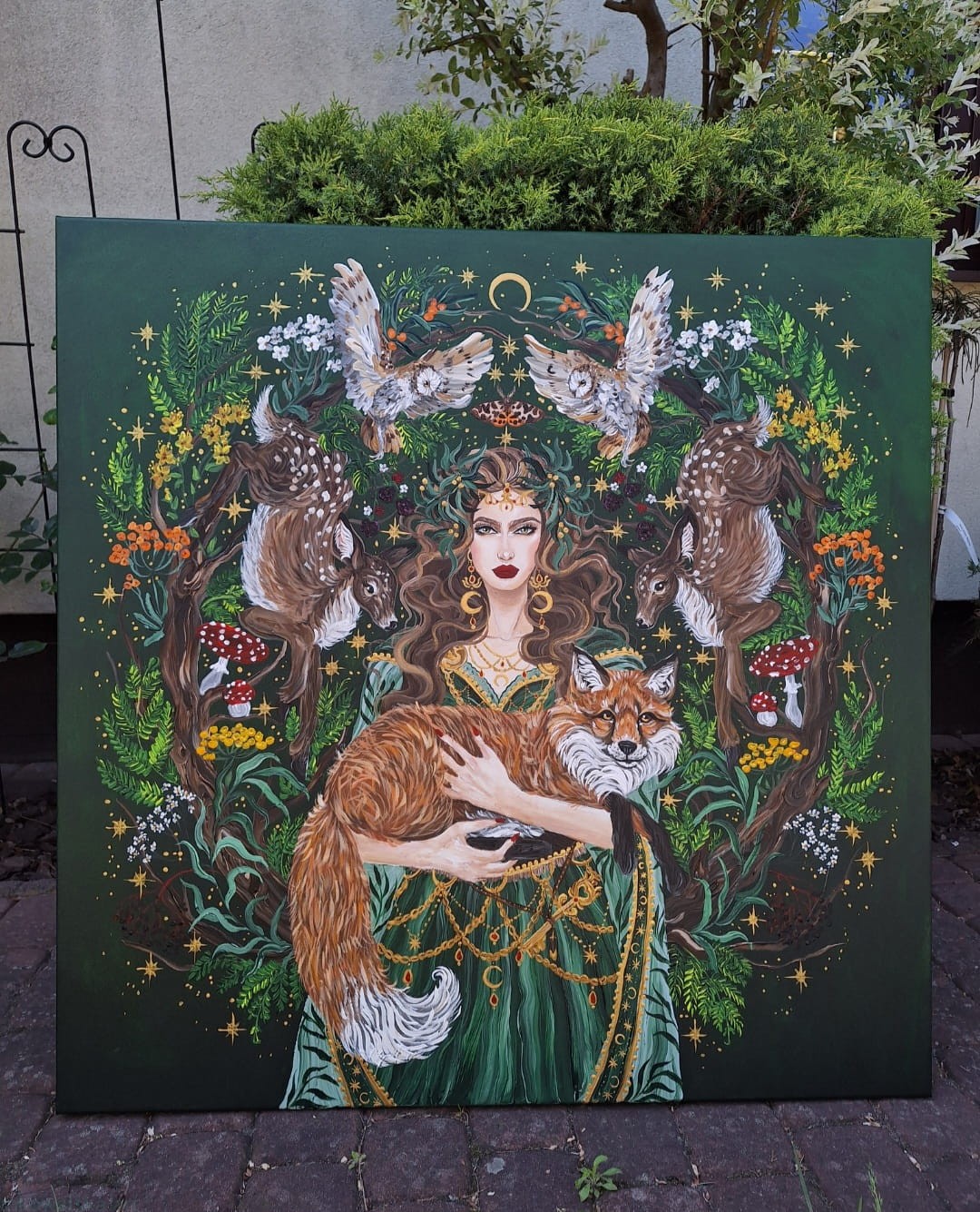 Obraz oryginalny z serii "Słowiańscy Bogowie": Wiedunka- format 100 x 100cm