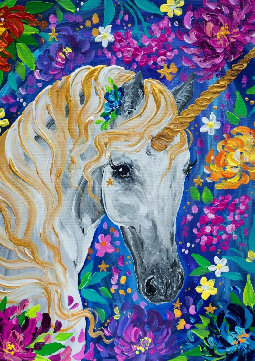 Plakat A3 - Jednorożec w kwiatach złoty