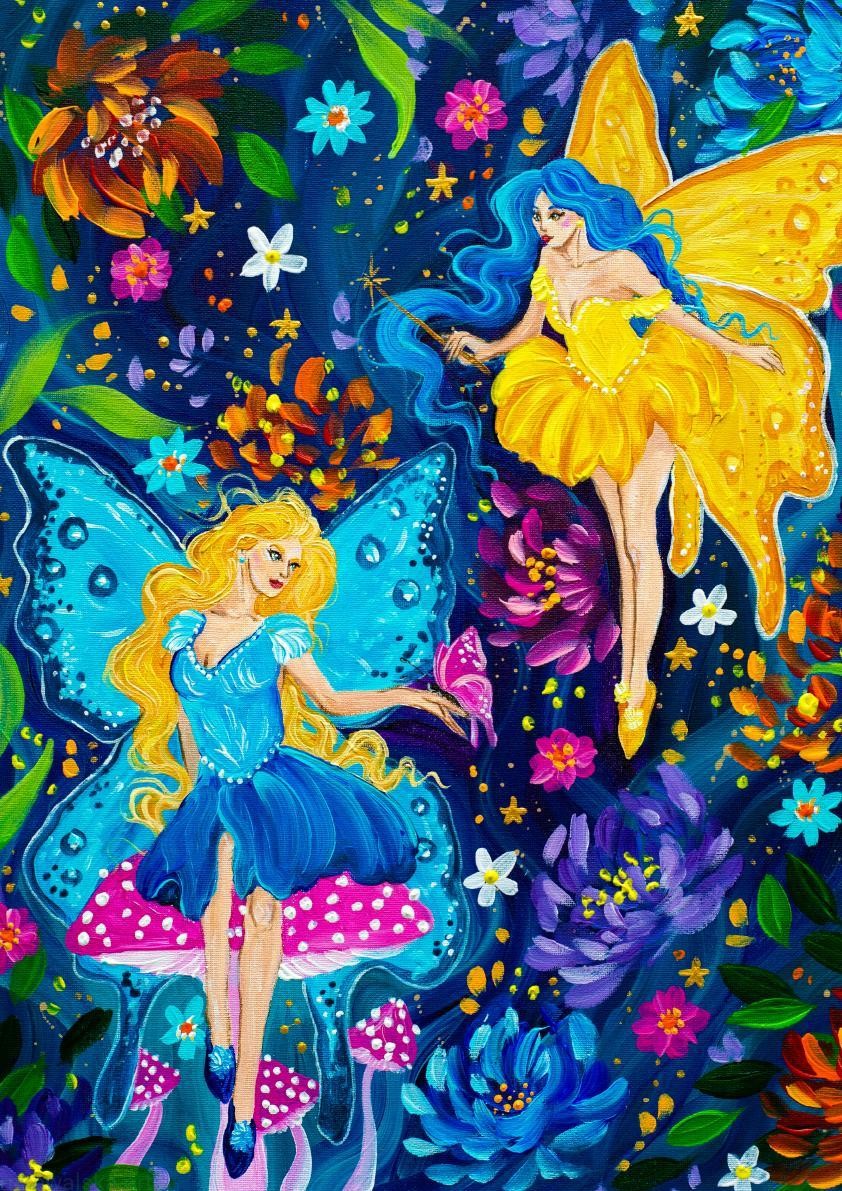 Kwietne Wróżki - moja wariacja na temat magii, wróżek i kwiatów. Plakat będzie dobrze korespondował z kwietnymi jednorożcami (plakat z kwietnym jednorożcem również w sklepie).