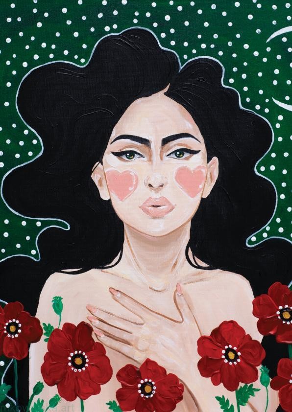 Oryginalny obraz został namalowany ręcznie farbami akrylowymi, projekt został sfotografowany przy użyciu profesjonalnego aparatu pełnoklatkowego, a następnie przetworzony i profesjonalnie wydrukowany na grubym papierze (gramatura 300), z błyszczącym wykończeniem.