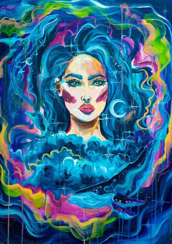 Oryginalny obraz został namalowany ręcznie farbami akrylowymi, projekt został sfotografowany przy użyciu profesjonalnego aparatu pełnoklatkowego, a następnie przetworzony i profesjonalnie wydrukowany na grubym papierze (gramatura 300), z błyszczącym wykończeniem.