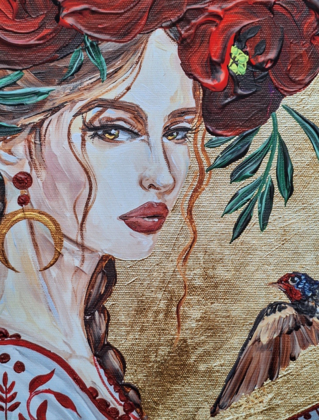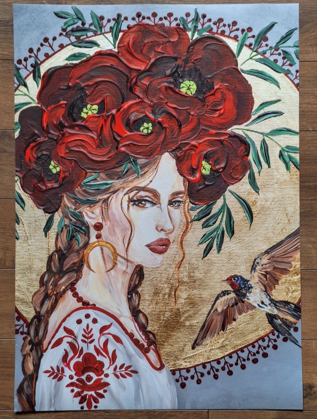 Idzie burza - obraz z serii Glamour Slavic Folk, w której łączę inspiracje sztuką ludową (nurt w sztuce: prymitywizm), folklorem oraz zestawiam go z bogactwem złota.
