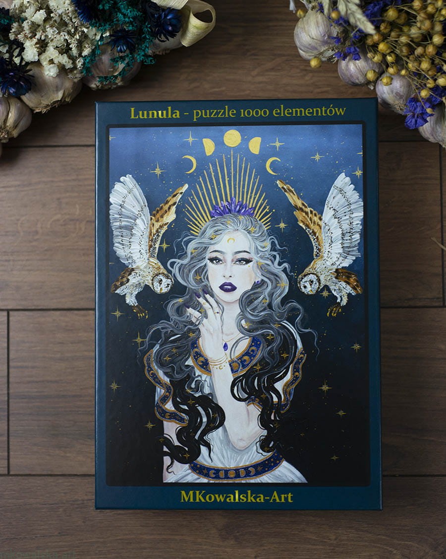 Puzzle 1000 elementów 70x50cm - Lunula siwa, symbol księżyca, spełnienia, możliwości, płodności