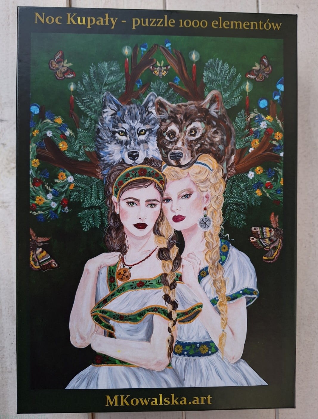 Na moim obrazie znajdziesz nawiązania do tradycji wianków i palonych w nim świeczek. Zdecydowałam się na namalowanie dwóch dziewczyn, ze splecionym warkoczem.