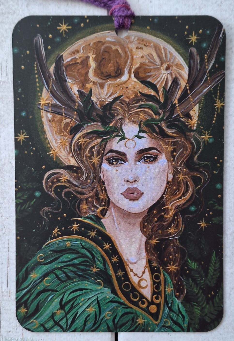 Obraz przedstawiający leśną łowczynię/boginię/Dianę, opowieść o kontakcie człowieka z przyrodą, naturą i lasem. Uwypukleniem aspektu natury i jej związku z lasem są jelenie rogi wyrastające z głowy kobiety. Za jej sylwetką widoczny jest księżyc w pełni, który symbolizuje nie tylko magię, ale też związek kobiet z energią księżycową. Sylwetka kobiety otoczona jest paprociami - możliwe, że delikatnie się za nimi chowa lub obserwuje widza. Określenie kobiety na obrazie łowczynią można rozpatrywać indywidualnie (jako aspekt łowcy, obrończyni zwierząt, na które trwa obława, łowczynię złych ludzi szkodzących w lesie).